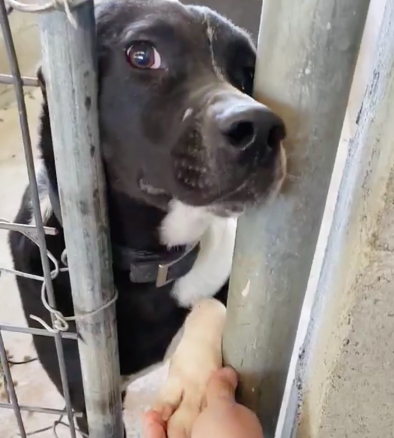 ▼工作人員都很喜歡這隻狗狗,為了讓牠獲得更多關注,大家才將Speck從籠子裡伸出手跟人握住的影片po到臉書上。這段影片短短幾天就引發討論,另一個狗狗救援組織「Allie's Hope For Paws Dog Rescue」也開始幫忙找認養人,很快就有了好消息!