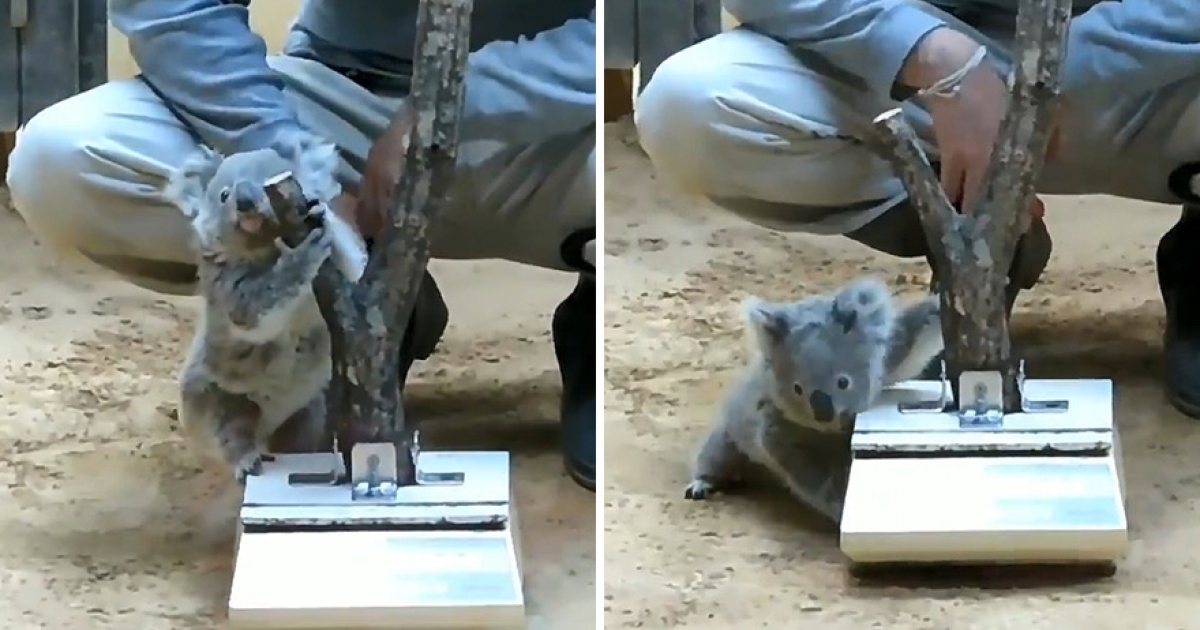 用樹幹騙無尾熊寶寶秤重 牠發現上當「超呆萌降落」:4假的…