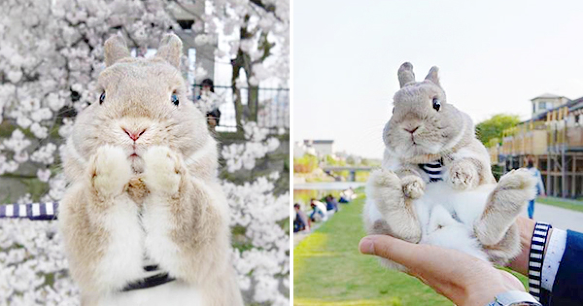 賞櫻花的模樣超治癒~ 主人拍「兔兔的日常」讓大家看牠過得有多爽