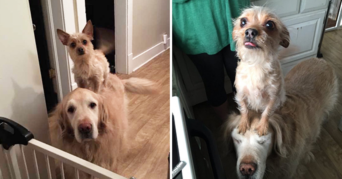 就仗著有哥哥寵~ 小隻汪「把大隻汪當坐騎」到處跑:我長高高啦