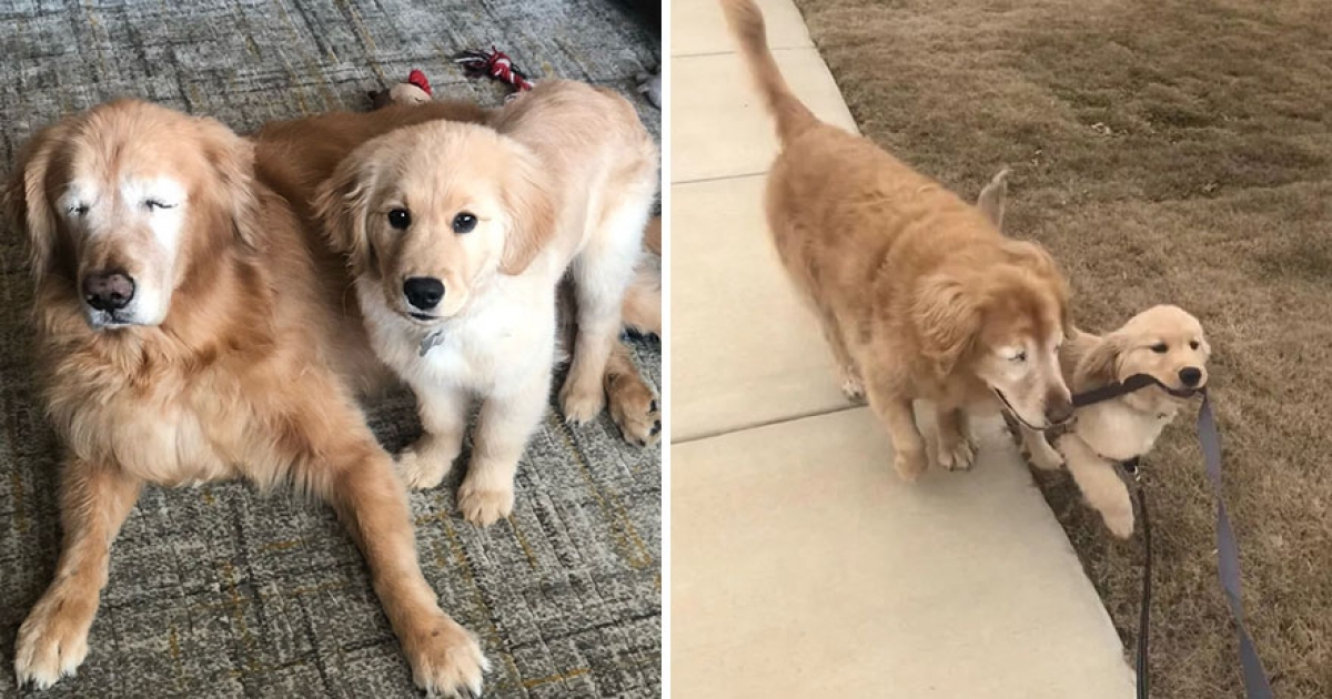 新領養的4個月小金金好懂事 進門「緊跟視障汪哥哥」:我當你的眼~