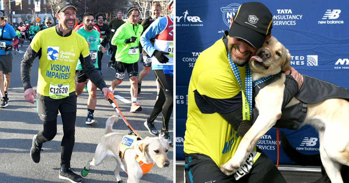 史上第一人!3隻拉拉接力幫引路 視障者破紀錄跑完半馬