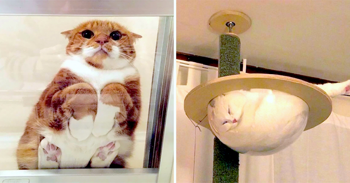 鏟屎的買到玻璃桌可以炫耀了~ 30張「喵皇下方視角趣味照」原來手手藏在這