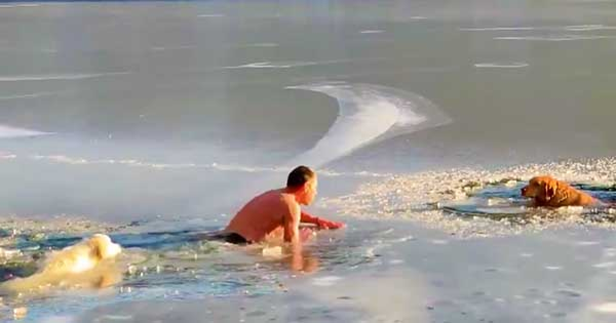 冰面突裂開…2隻狗狗困冰湖 暖男和金金緊急破冰救援:我們來救你們了