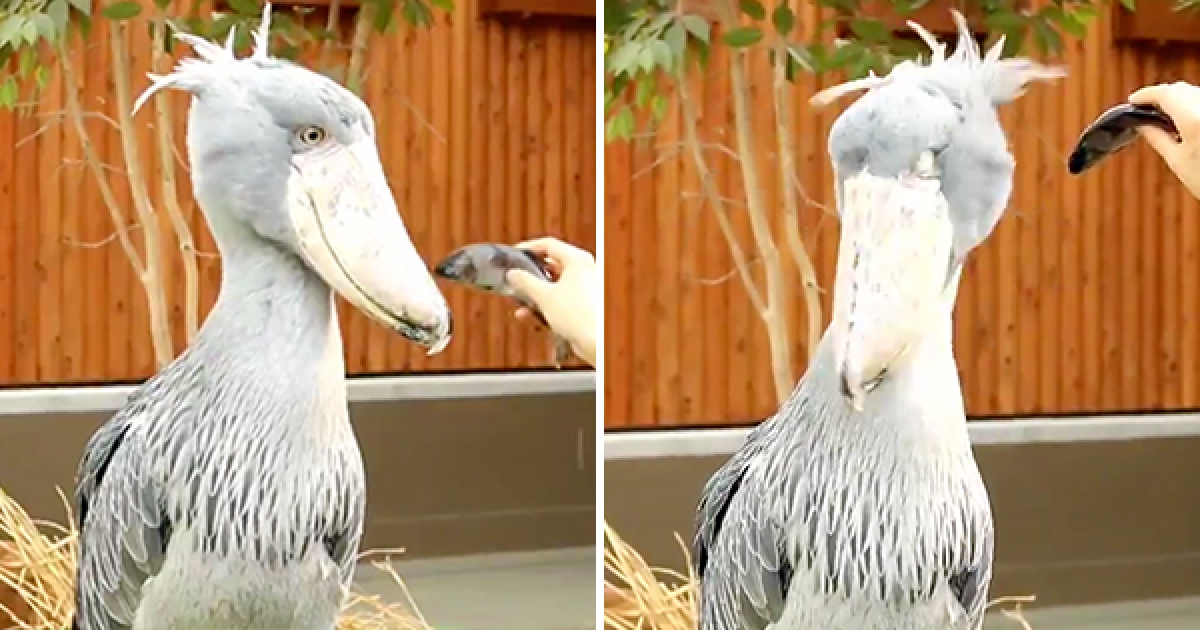 大頭鳥「搖頭拒吃」小魚 飼養員拿出大條的擺眼前…牠一口吞超滿足