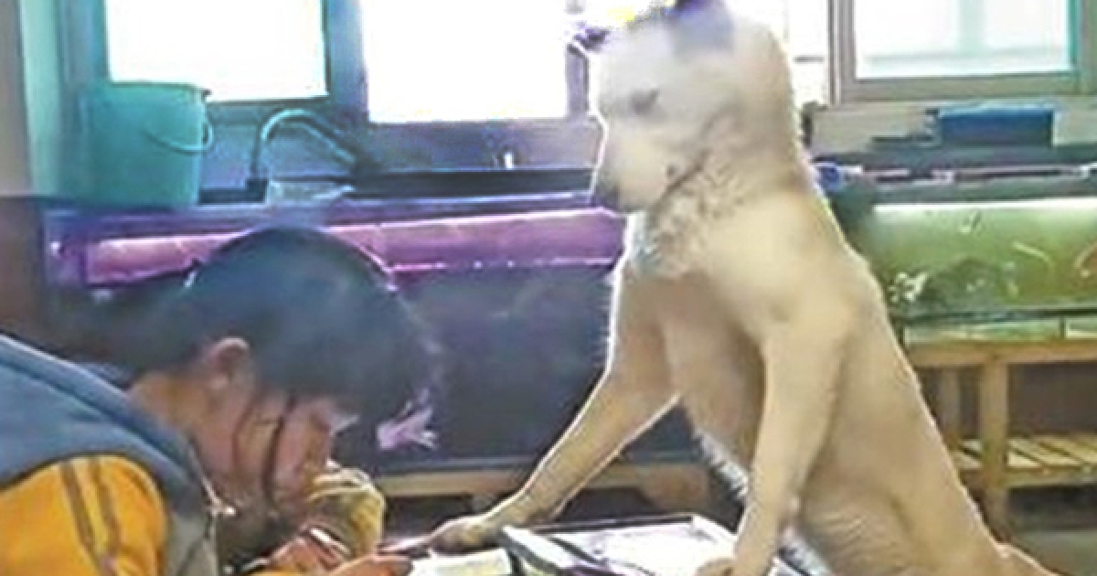 主人下令愛犬「盯著女兒寫作業」 汪星人爆笑站起來:泥給偶好好寫喔