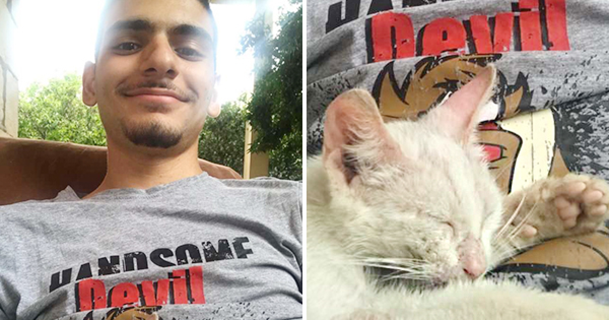 午睡醒來發現「肚子上多了一隻貓」 天使模樣讓男子心軟:跟我一起住吧