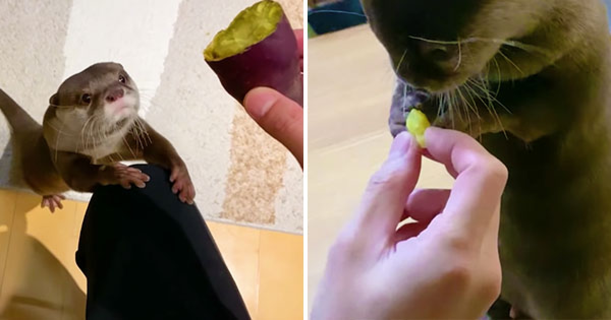 萌水獺聞到烤地瓜香味馬上衝過來 咬一口「呸呸呸」反應爆笑