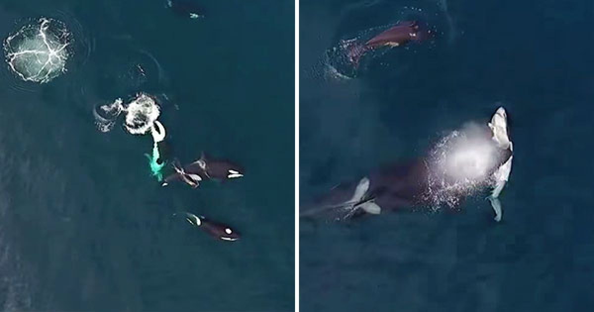 無人機拍下「虎鯨合作圍捕」全過程 超可憐大白鯊慘被撕開GG了
