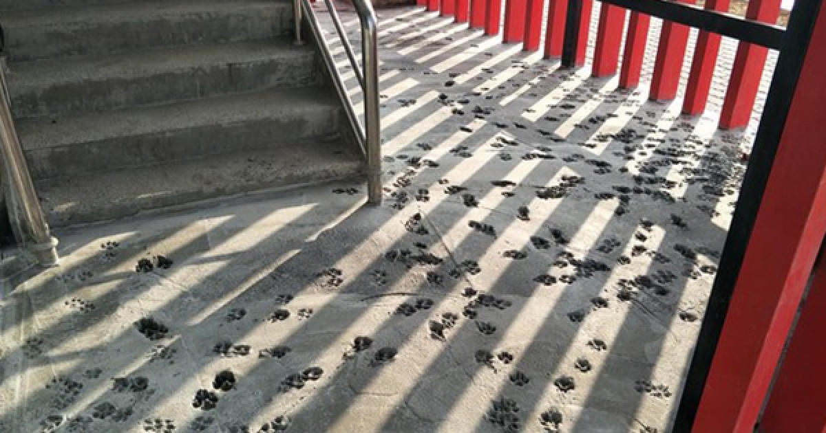 毛孩半夜開趴好High!水泥地留滿滿腳印 網笑:就當免費壓花