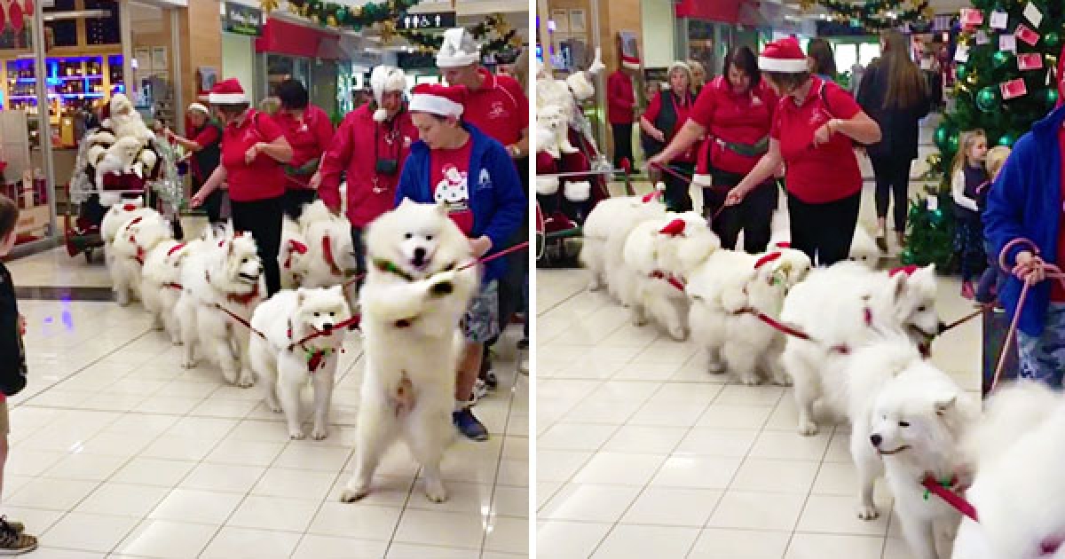 白胖薩摩耶Cosplay成馴鹿 集體笑咪咪「拉雪橇」萌化所有人