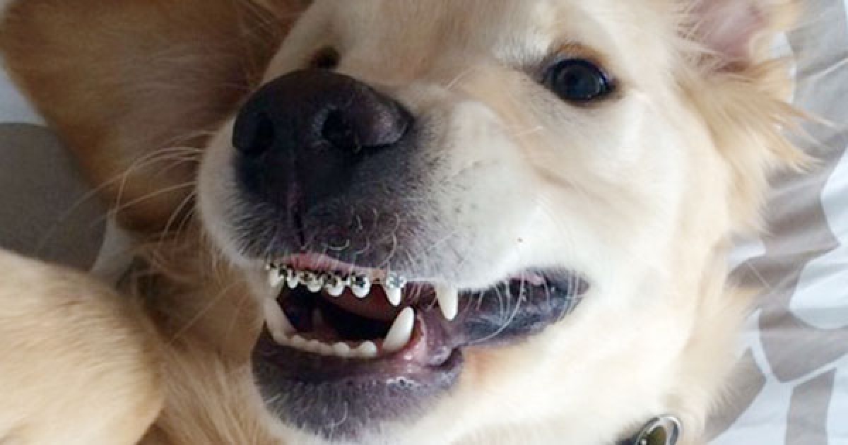 暴牙汪戴上「矯正牙套」狂賣萌 網跟著燦笑:很快就會變帥帥汪囉