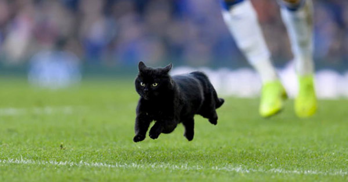 好奇黑貓闖進足球賽「跑全場」 大家暫停看牠逛到不想離開