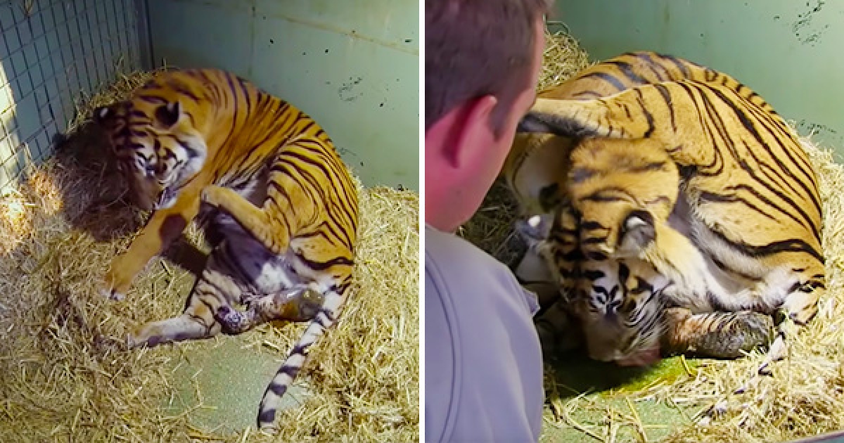 攝影機拍下「老虎媽媽生產的神聖過程」 螢幕出現的畫面讓大家都興奮尖叫