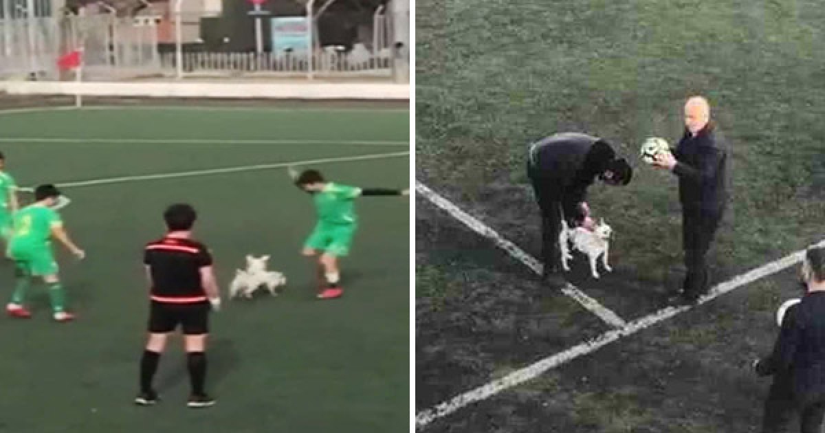小白汪闖足球場玩好HIGH 球員全變陪練:球搶不回來啊