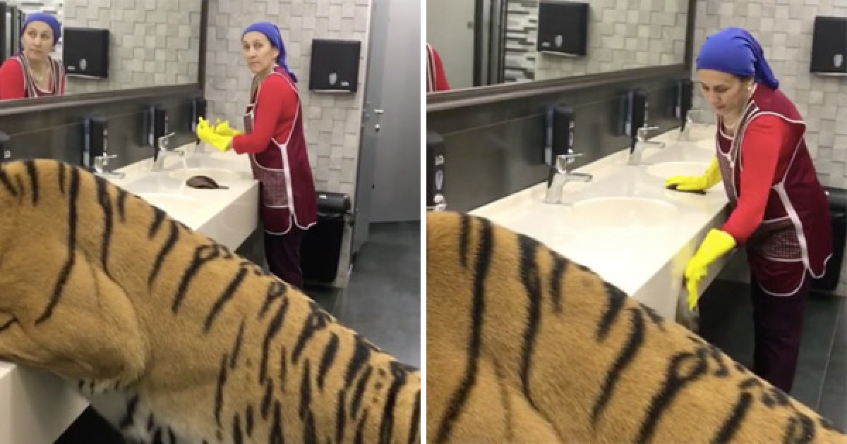 孟加拉虎趴洗手台狂喝水 戰鬥民族阿姨淡定邊擦邊聊天:這就是大貓嘛!