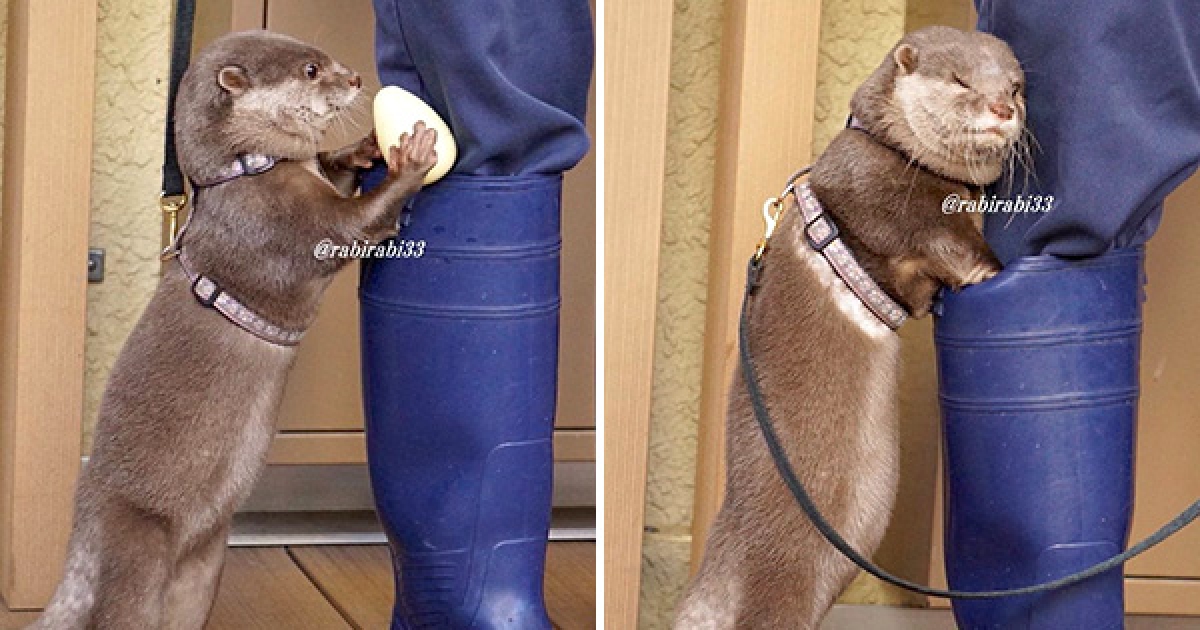 到手的玩具94要好好保管 呆萌水獺認真「塞飼養員雨鞋」:幫我保管哦~