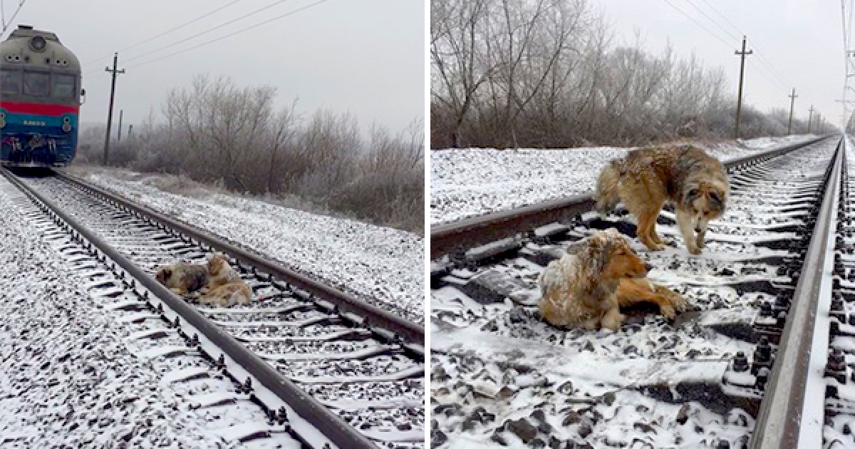 不肯拋下鐵軌上受創的朋友… 火車一來狗好友「這個動作」幫牠躲過