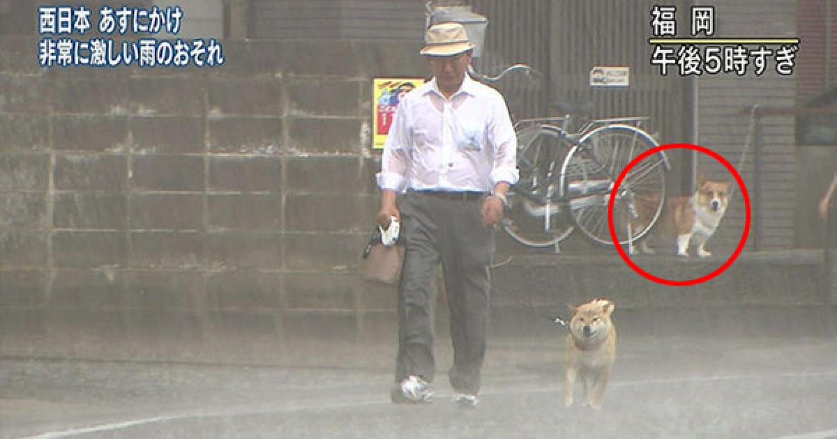 柴柴暴風雨堅持「跟主人出門散步」 留守柯基看到嚇歪:你們484傻?