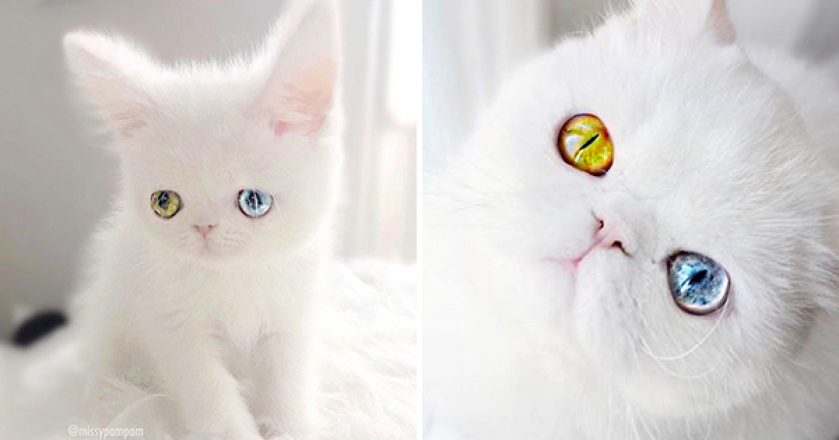 是寶石嗎? 純白小貓有異色瞳 夢幻顏值征服全世界