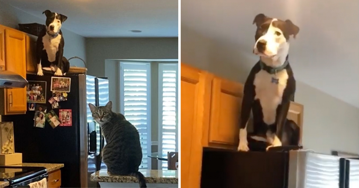 投錯胎了~ 鬥牛犬學貓貓「飛身一躍」腳步超輕盈 「整天蹲冰箱」主人無奈:牠以為自己是貓