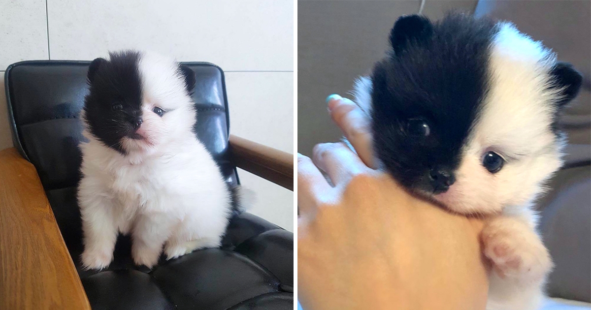 黑白分明!小汪汪出生就有對半「陰陽臉」 網萌笑:生一生沒墨了~