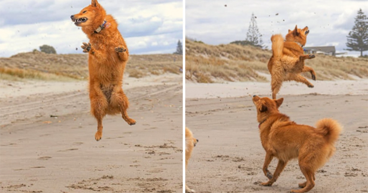 喜歡到放飛!嗨汪「腳碰到沙灘」高興跳不停 同伴傻眼:你冷靜一點