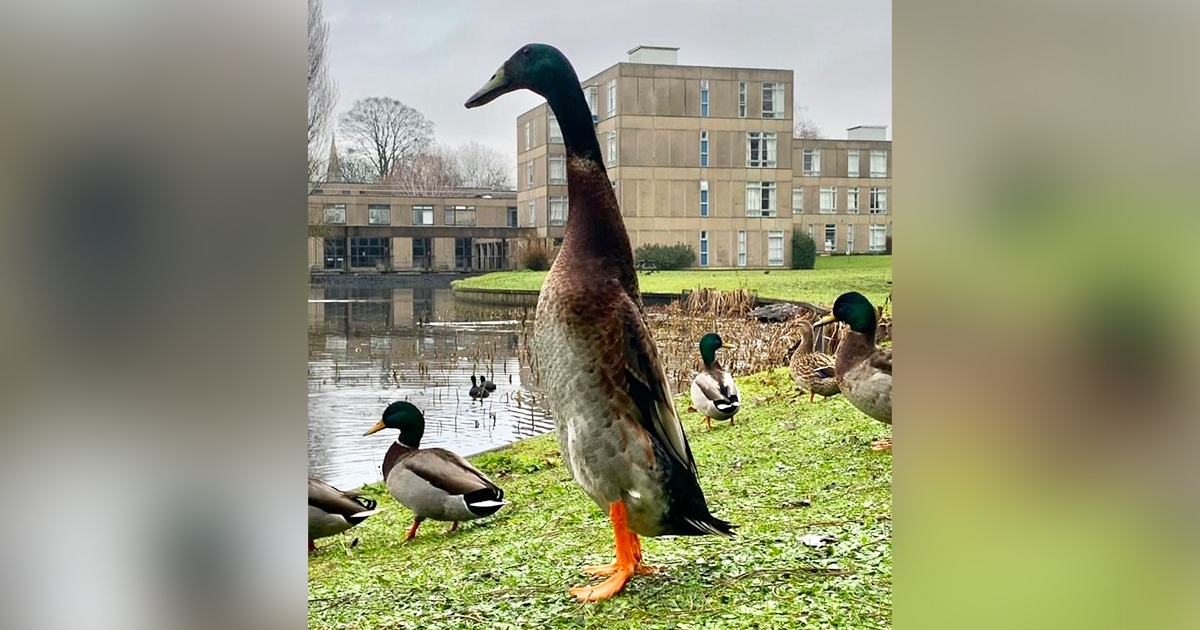 大學校園出現「人形巨鴨」悠哉看風景! 學生看餵食片驚訝:夭壽~是真的