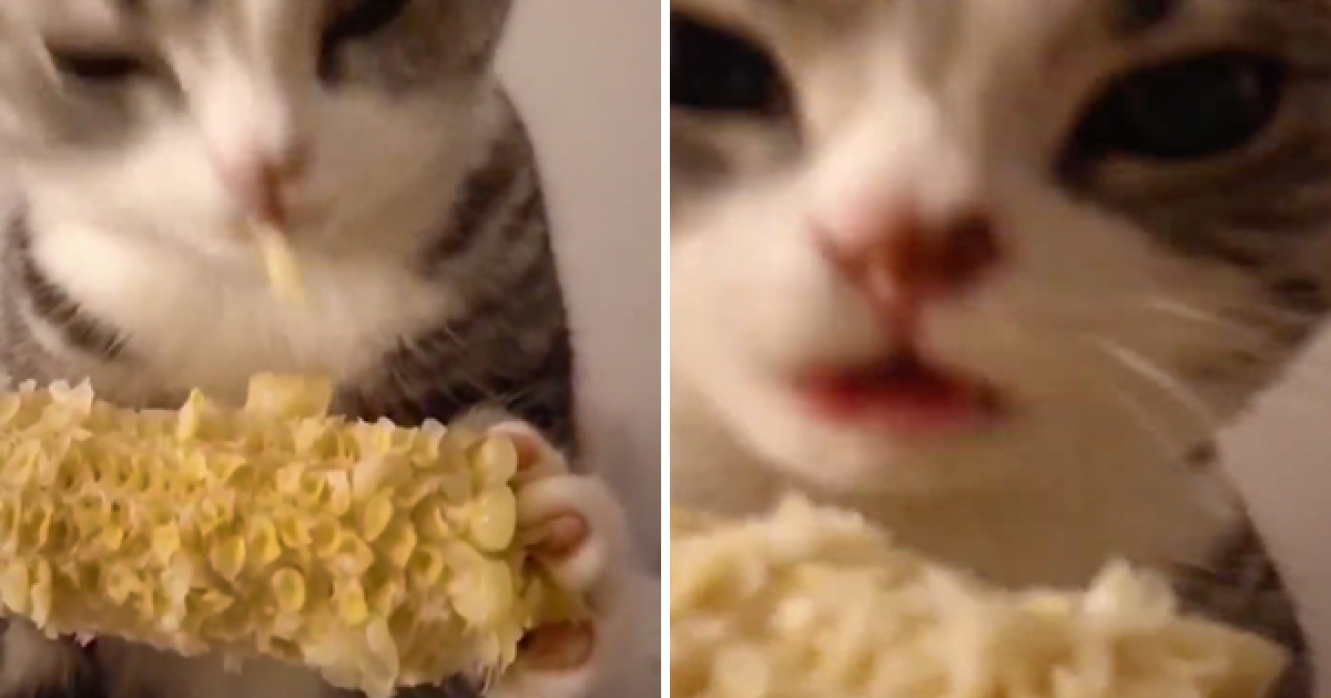 櫻桃嘴貪吃貓「失控狂嗑玉米」 魔性咀嚼聲讓網友上癮:看了30分鐘