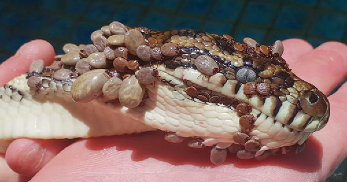 蟒蛇「全身長石頭」無助趴泳池 專家幫牠清出「511隻」也嚇懵