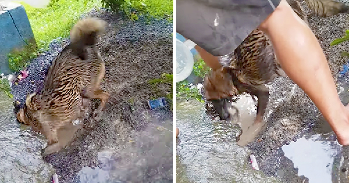 暴雨過後狗寶寶還在被淹沒的小窩 狗媽媽「拼了命狂扒土」救孩子