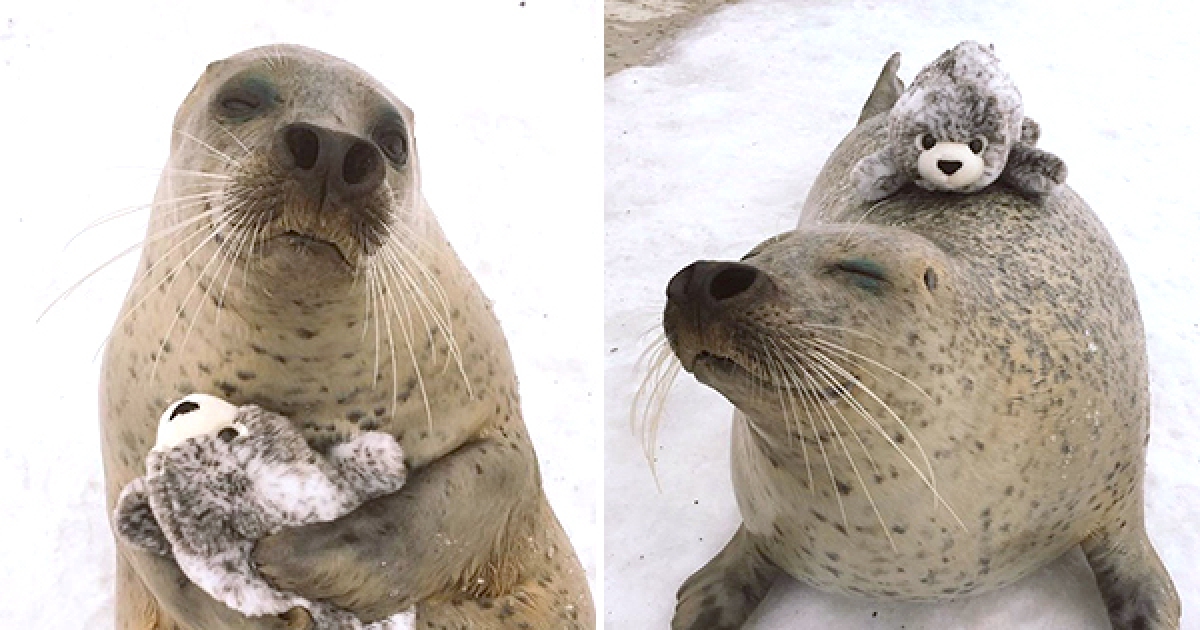 「真的是送我的嗎?」 海豹收到自己的娃娃樂翻 一抱就捨不得放手了