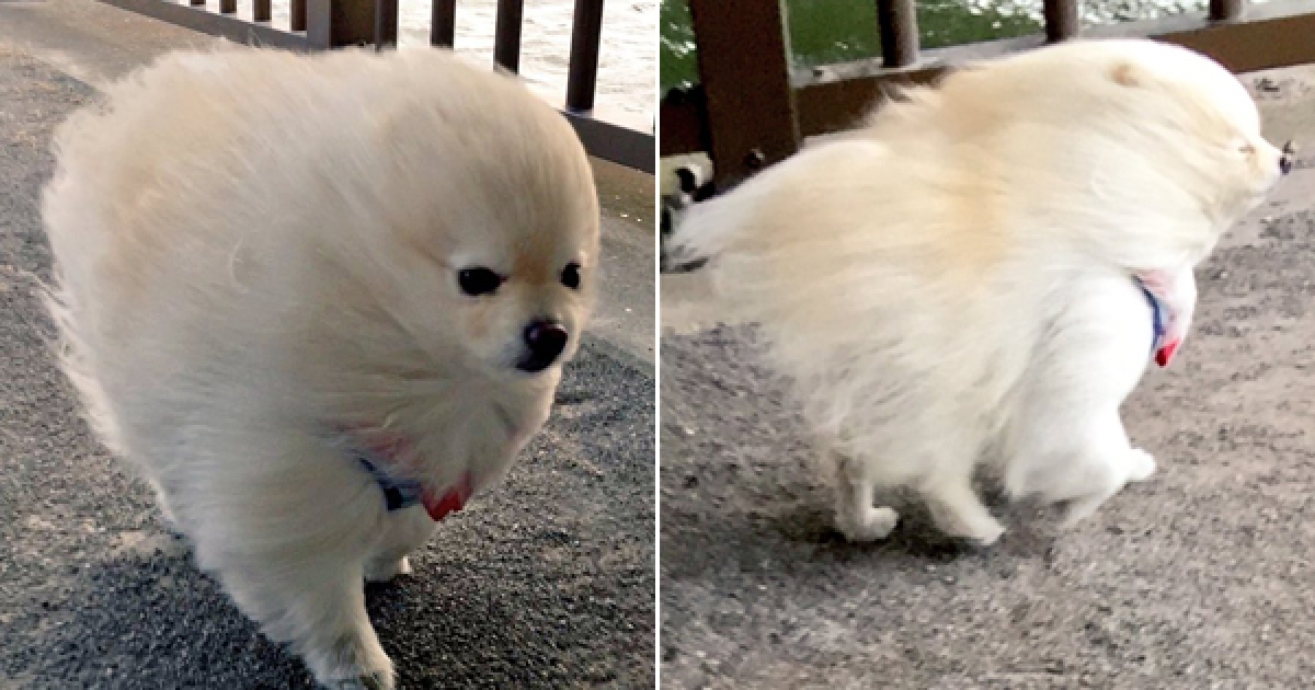白博美狂風中「堅持散步」 一出門馬上炸成海豹:我…我還能走…