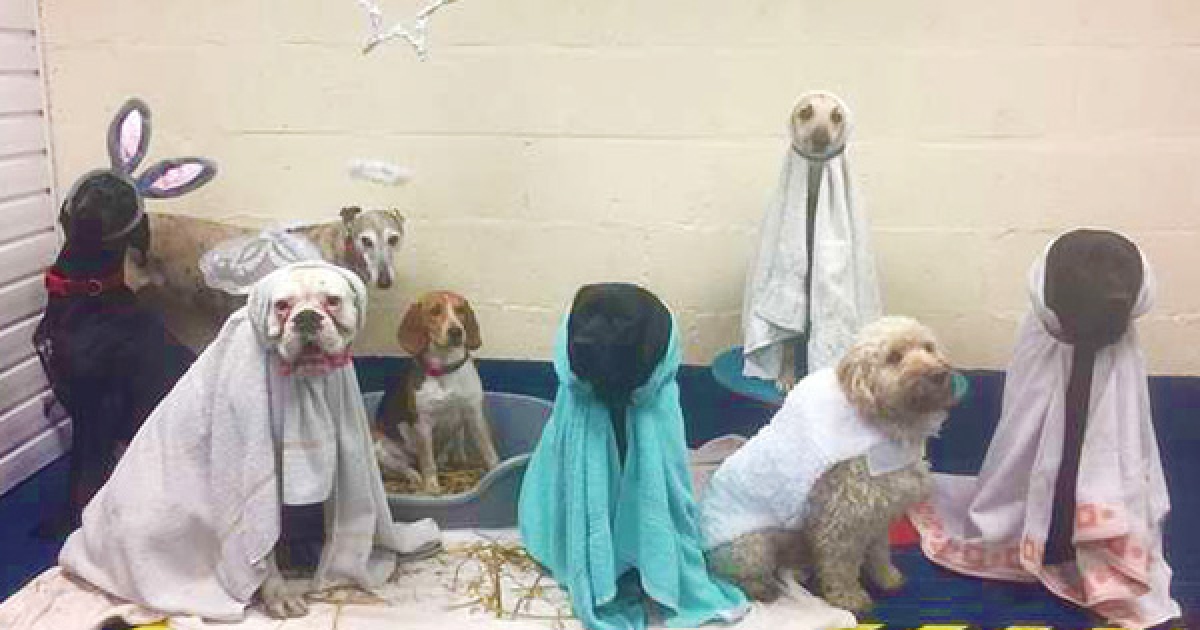汪星人神Cosplay「耶穌誕生場景」 網笑翻:連表情也很到位