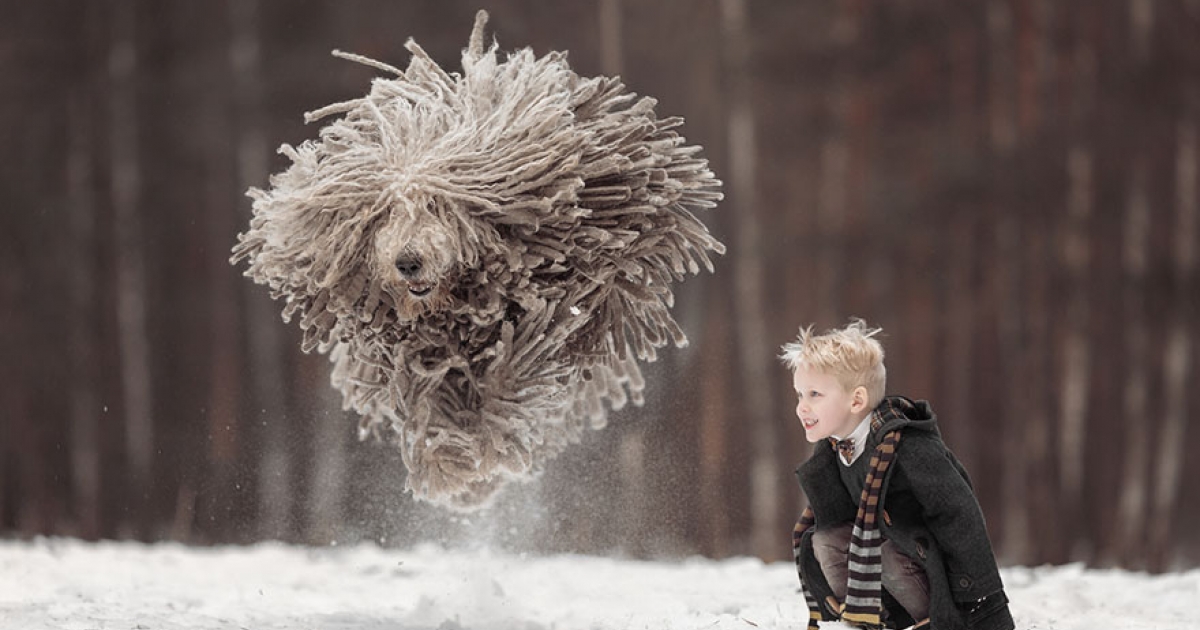 「拖把犬」跟男孩在雪地玩超嗨 19張「大狗狗跟小主人」的療癒日常照