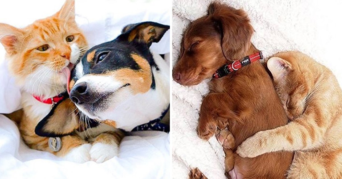 很少機會看到的畫面… 24張「貓咪對狗狗黏TT」的有愛照片