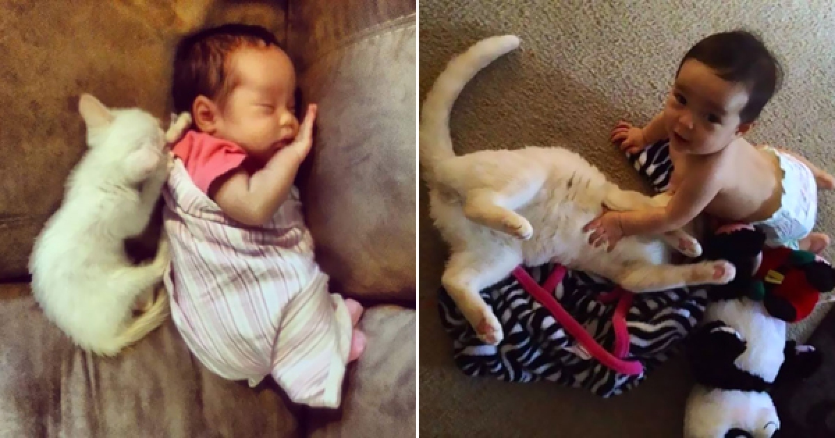 小女嬰和奶喵「初相遇就睡一起」 長大後連爸爸都嫉妒:無法介入他們的感情!