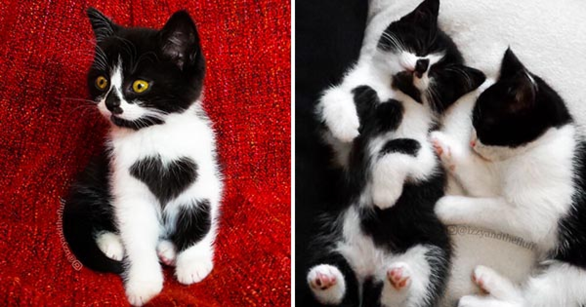 黑白小貓「胸口自帶愛心」 長大後像穿毛衣加倍萌!