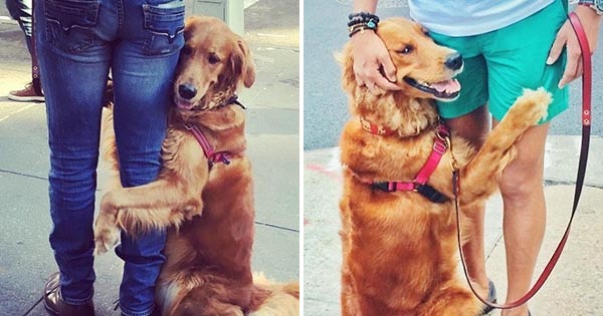 暖金金最不想看到有人難過 一見路人就衝上去「抱大腿」:給你滿滿的元氣~