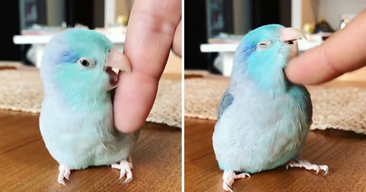 鼻要摸那裡! 小藍鳥被按錯地方「森77翻臉」 下秒就瞇眼笑:這邊才對~