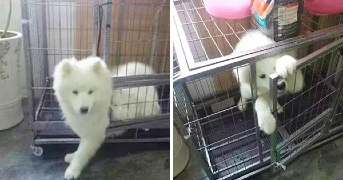 小薩越獄到一半驚見主人在看牠 下一秒整隻乖乖退回去:沒事沒事~