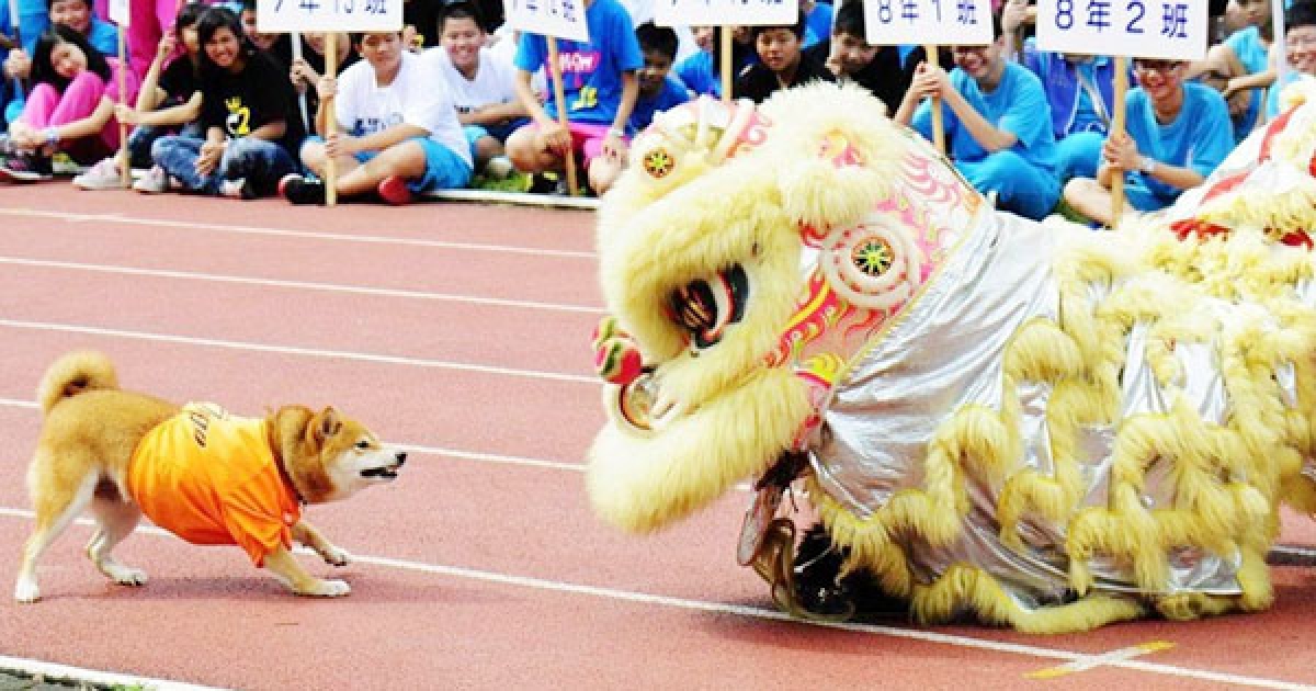 校犬誤以為有危險生物入侵 衝上前擋住舞獅:不准泥靠近學生~