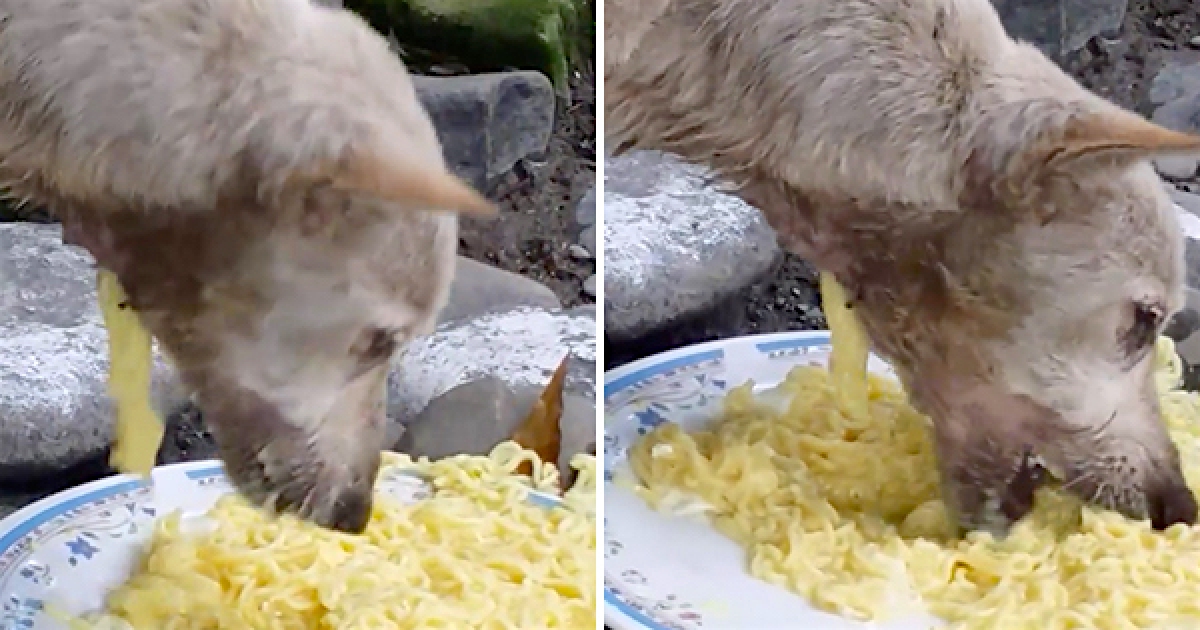浪浪猛吃麵卻永遠吃不飽 網友淚崩:牠的喉嚨…QQ