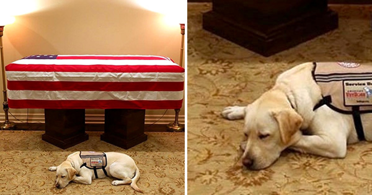 狗狗眼中只有主人… 忠犬為老布希守棺「盡職陪他走完最後一哩路」