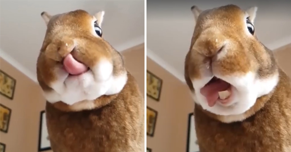 慢動作鏡頭出賣「萌兔吃香蕉」 牠大露雙下巴還伸舌舔鼻孔