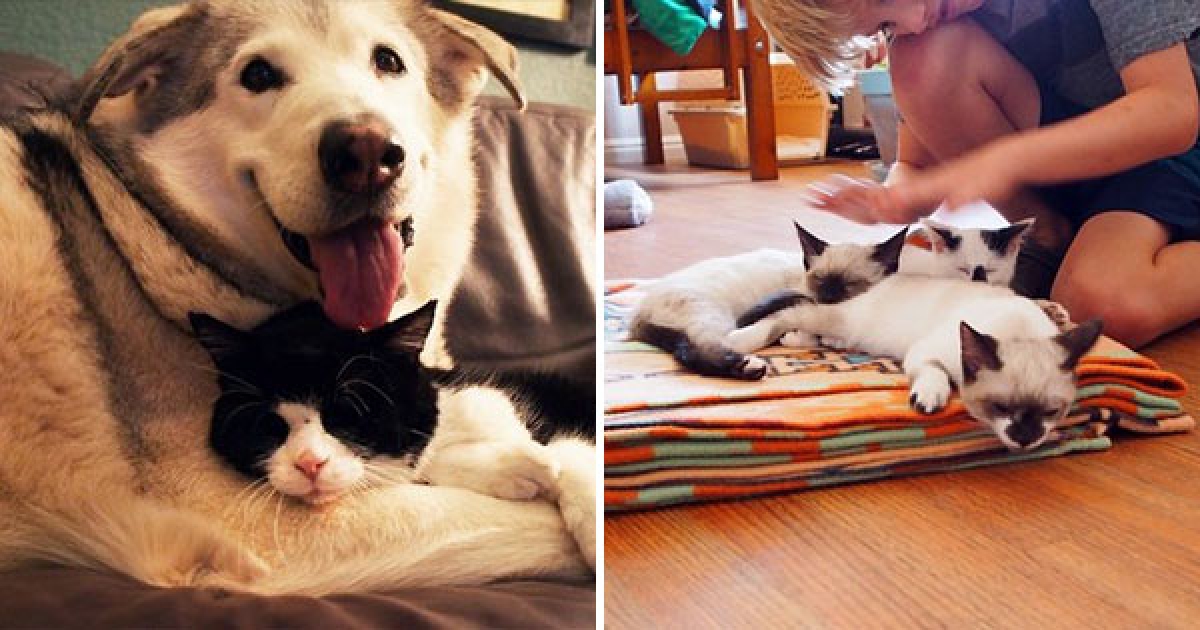 狗狗無法接受喵麻吉已經上天堂 直到家裡來了4隻貓咪…牠終於笑了