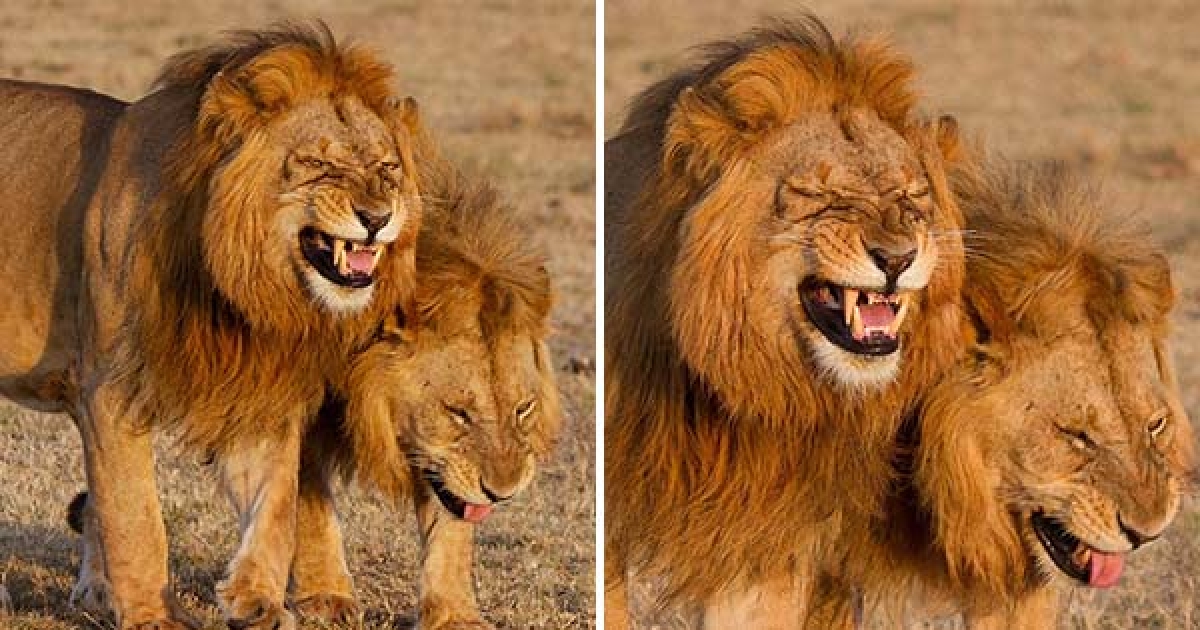 2隻雄獅散步時突然戳中笑穴 默契張嘴:哈、哈、哈!