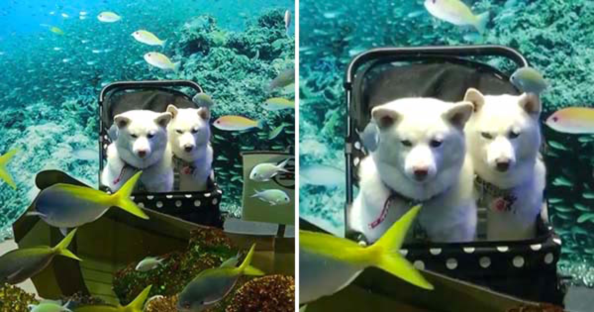 胖柴第一次逛水族館震驚到不說話 歪頭懷疑狗生:魚在天上飛