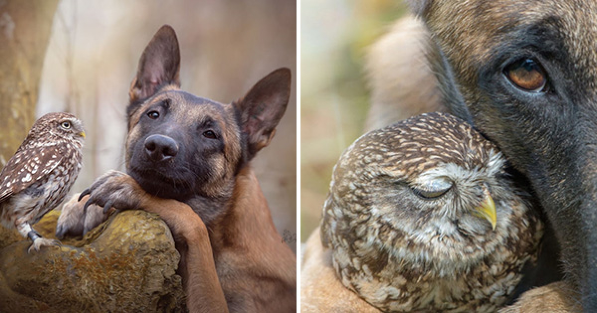 大狼犬被貓頭鷹收編「變專屬跟屁蟲」 凹嗚:我欲甲你攬牢牢~