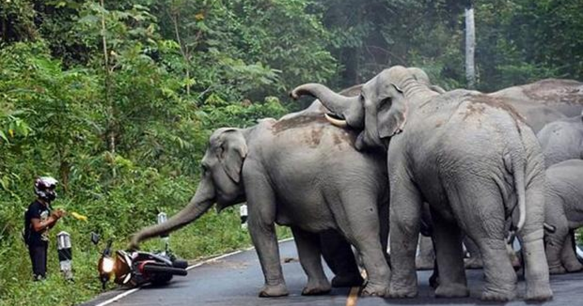 機車騎士想超車猛按喇叭 大象群圍過來:你再按一下試試?